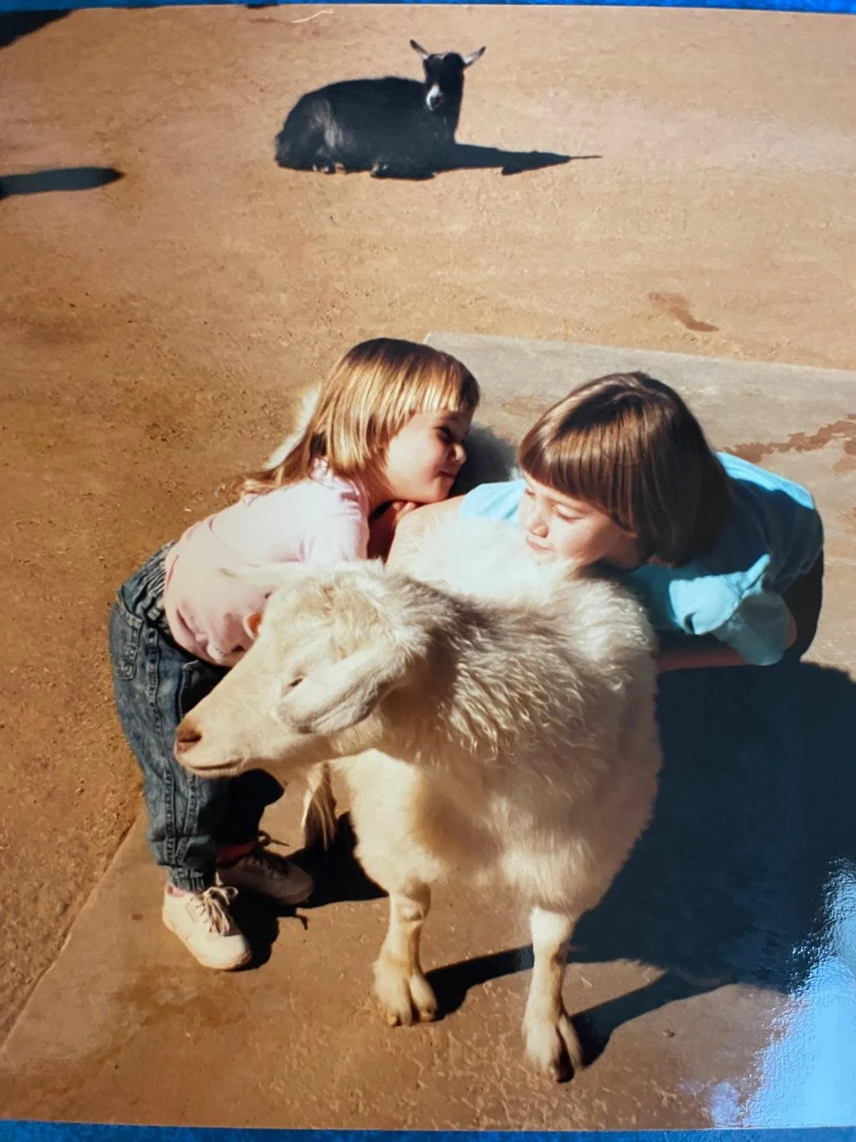 Me, on the right, with blond hair, and my older sister on the right with brown hair.